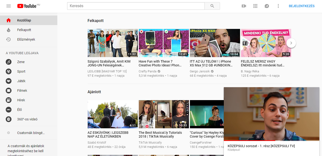Ha erre rányomsz, annyit csinál, hogy átvisz a főoldalra, miközben kicsinyített lejátszóban megy tovább a videó. Így tehát tudsz böngészni a videók között, miközben egy videót néznél.
